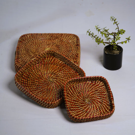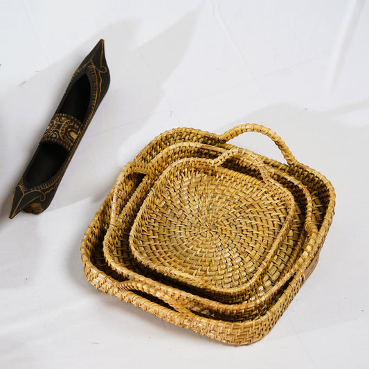 Karbi Square Serving Tray Set (Natural, 3 pcs) – Assam