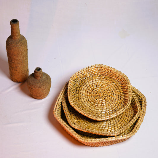 Tiwa Hexagonal Tray Set (Natural, 3 pcs) – Assam